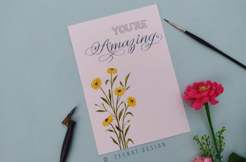 - How to design a Watercolor Greeting Card π¨π- Greeting Cards are a great way to express your feelings. And if it is handpainted, it will become more precious !!Here are a few steps to make a pretty nice greeting card. Even if you are a beginner, don’t worry, it will become easier once you start. What will you need ? Things you’ll need to make this card are listed below : Watercolor paper (300gsm ; good enough) (used A5 size) Watercolor Watercolor Pallete Watercolor brushes (size 2 & 4 ) Fineliner (no. 3) Pointed pen Mettalic color Mechanical Pencil Ruler Water Draw guidelines Let’s start with drawing guidelines. Make 4 guidelines on top-right. keep 1.2 cm space between…